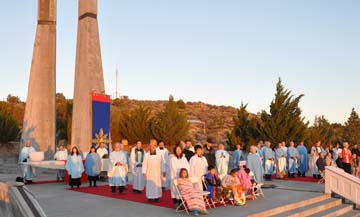 The day began before dawn with Jubilee Sunrise Divine Service (the “Jubilee” referring to the concluding celebration of the Pannuches rite), a concelebrated service wherein all ordained members were vested. The service was also an interfaith service and held at the Cathedral Church of the Americas, as is customary during Convocation. After the service the Reverend Diana Carragher received third-level ordination (to the presbyterate). The services were followed by a grand breakfast buffet at the open-air Refectory.