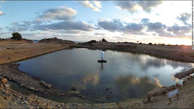 The sacred pool on San Pantaleo, off the west coast of Sicily, has since been refilled, and a replica of the statue of Ba’al has been placed at its center.