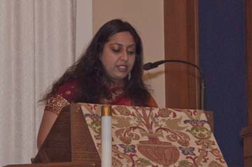 Radheka Patel Savoy, a Hindu by religious tradition, read from the Gayatri Mantra in English and Hindi as part of the program.