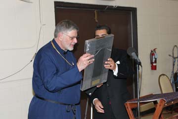 The Right Reverend Gene Savoy Jr., as president of the newly formed Nevada Clergy Association, presented a certificate to Father George on behalf of the association for his many years of participation in interfaith events; and as a gift of the International Community of Christ, Bishop Savoy presented Father George with an icon of the Byzantine monk Symeon the New Theologian, who is recognized as a saint by the Orthodox Church and was enshrined in 2004 by the Advocates for Religious Rights and Freedoms.