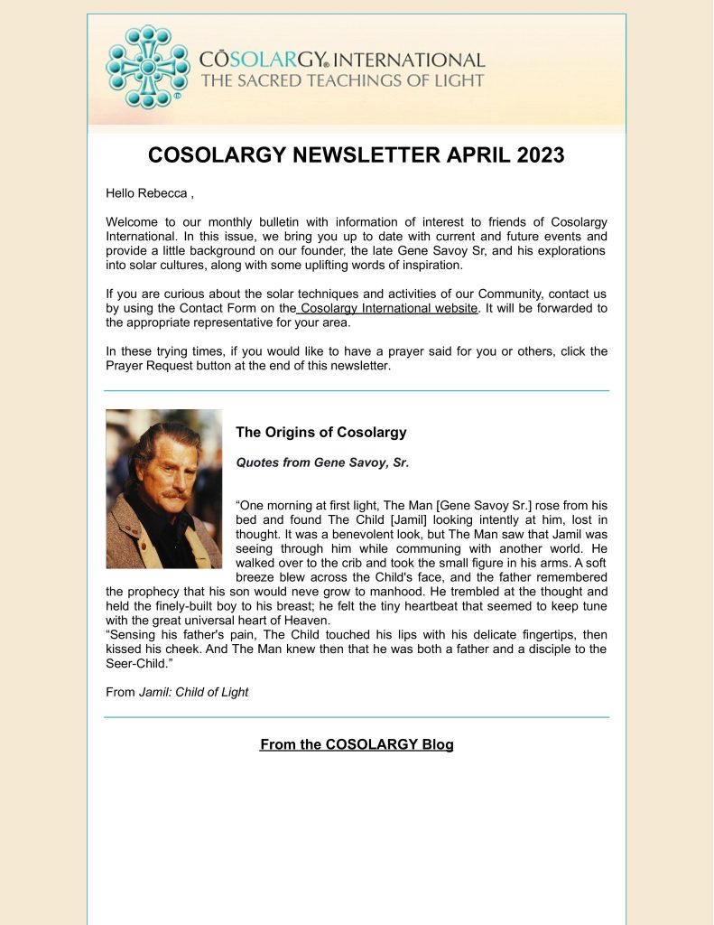 Subscribers to the Cosolargy.org website receive this monthly newsletter.