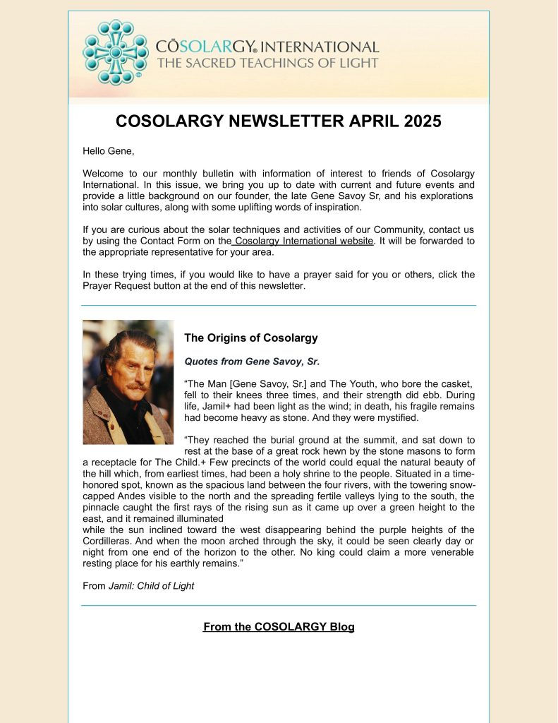 Cosolargy Newsletter April 2025 April 3, 2025 Communications & Outreach Subscribers to the Cosolargy.org website receive this monthly newsletter. Click here to read or download this issue.