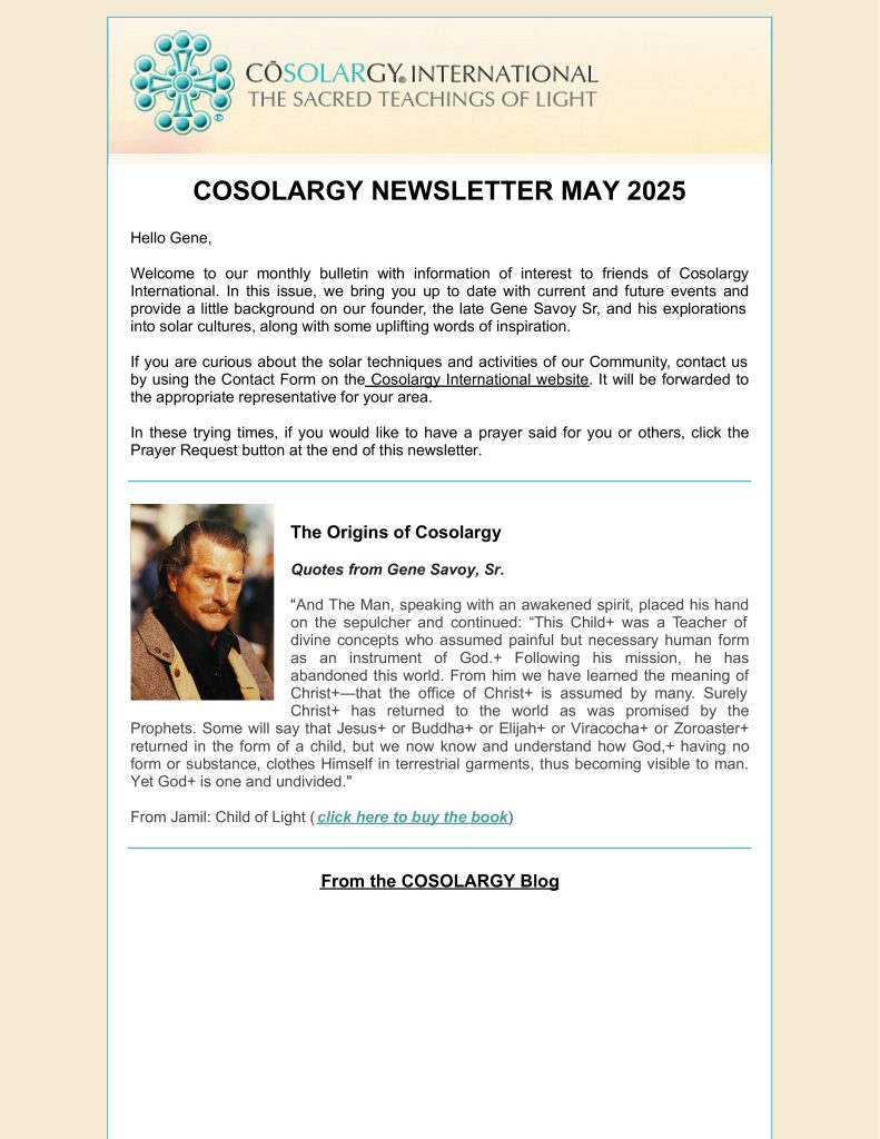 Cosolargy Newsletter May 2025 May 15, 2025 Communications & Outreach Subscribers to the Cosolargy.org website receive this monthly newsletter. Click here to read or download this issue.