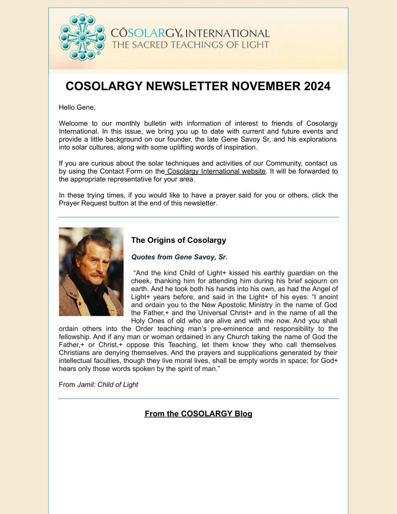 Cosolargy Newsletter November 2024 November 21, 2024 Communications & Outreach Subscribers to the Cosolargy.org website receive this monthly newsletter. Click here to read or download this issue.