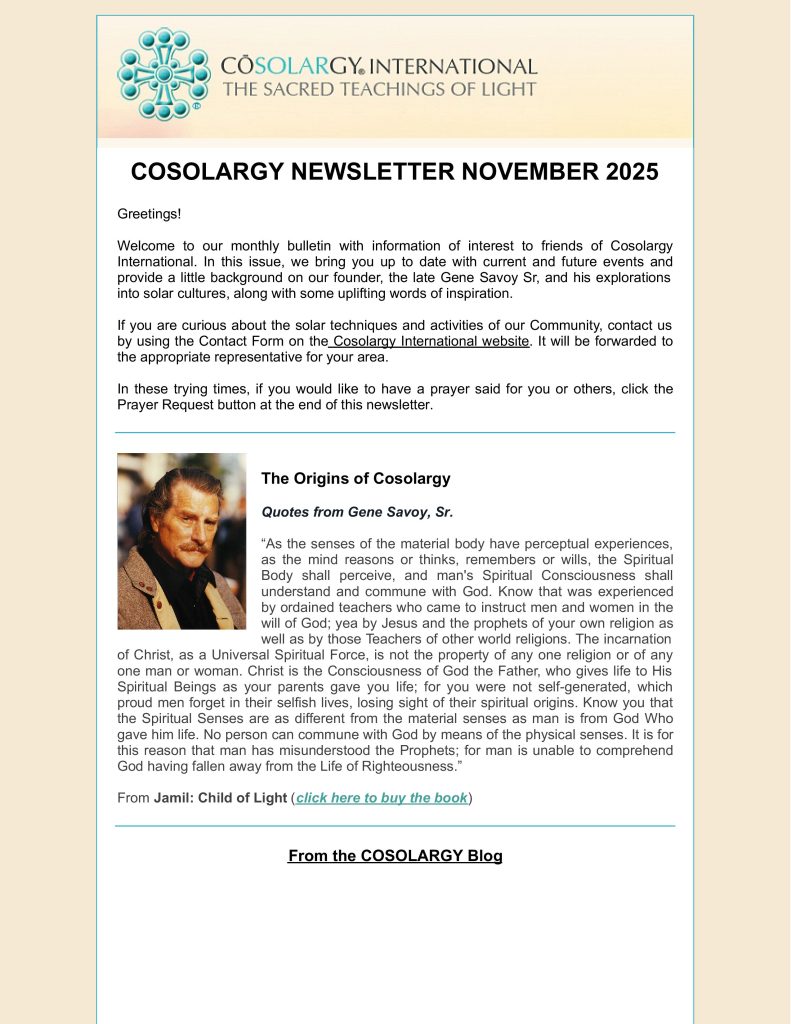 Cosolargy Newsletter November 2025 November 13, 2025 Communications & Outreach Subscribers to the Cosolargy.org website receive this monthly newsletter. Click here to read or download this issue.