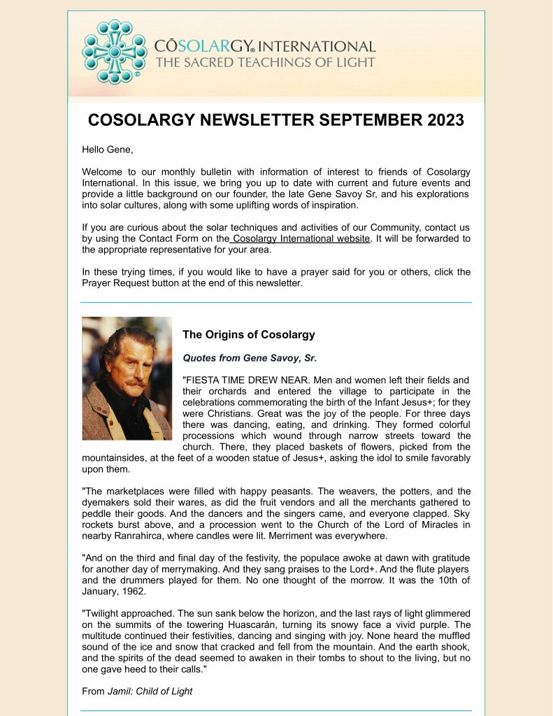Cosolargy Newsletter September 2023 September 21, 2023 Communications & Outreach Subscribers to the Cosolargy.org website receive this monthly newsletter.Click here to read or download this issue.