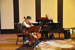 Carmelite Sisters, Clorinda de Stockalper OCD on piano and Claire Sokol OCD on cello, performing Debussy’s Reverie. PHOTO Stephan Fuelling