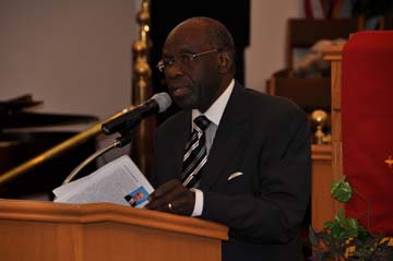 Rev. William C. Webb, pastor emeritus, Second Baptist Church of Reno, delivers a rousing welcome at 2012 MLK Jr. Celebration PHOTO: Stephan Fuelling