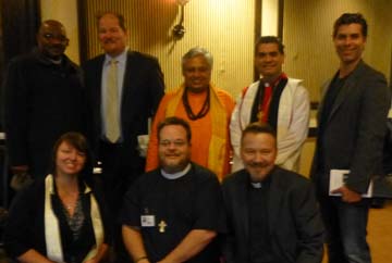 From left to right, first row: Rev. Kris Marshall (First United Methodist Church), representative of St. Catherine of Siena Episcopal Church, Rev. Howard Dotson (Spanish Springs Presbyterian Church); second row: Bishop Luther Dupree Jr. (Church of God in Christ), Rev. Neal Anderson (Unitarian-Universalist Fellowship of Northern Nevada), Rajan Zed (Universal Society of Hinduism), Bishop Gene Savoy Jr. (International Community of Christ), Rt. Rev. Sean Savoy (International Community of Christ).  PHOTO: Rajan Zed