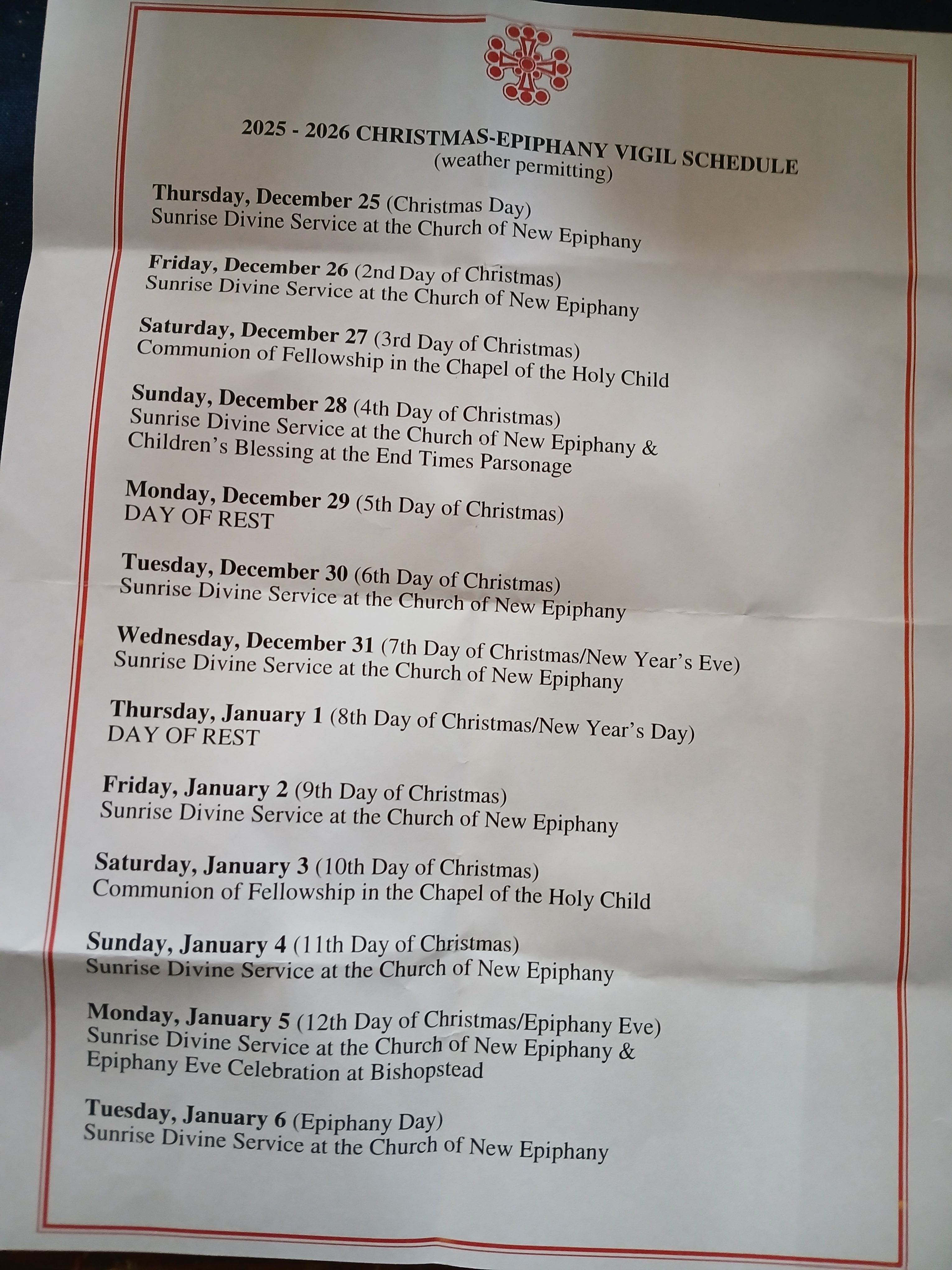 - Click here to see the full schedule of services for the Christmas-Epiphany Vigil