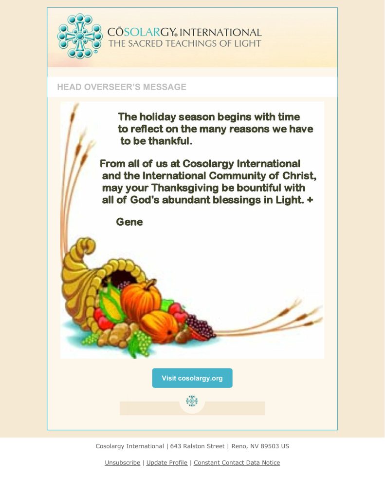 THANKSGIVING MESSAGE: NOVEMBER 27, 2025