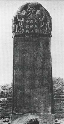 In the year 781 of the Christian era, a monument was erected in the western suburb of the Chinese capital at Ch’ang-an to commemorate the mission of the ancient Church of the East to the great T’ang dynasty. With it begins the indisputable (accessible) history of Christians in China. (See footnote 1) The stone itself is a single slab of hard, grey limestone, nine feet in height, between three and four feet in width, tapering toward the top, and nearly one foot in thickness. The weight is rather more than two tons. Its inscription is written in both Chinese characters and a form of Syriac that, like the Chinese, is written vertically and from right to left. The stone is known as the “Luminous Teaching Monument” (ching-chiao pei) to the Chinese, who style it a “grand tablet” (feng pei), a term commonly and almost technically applied to tombstones.